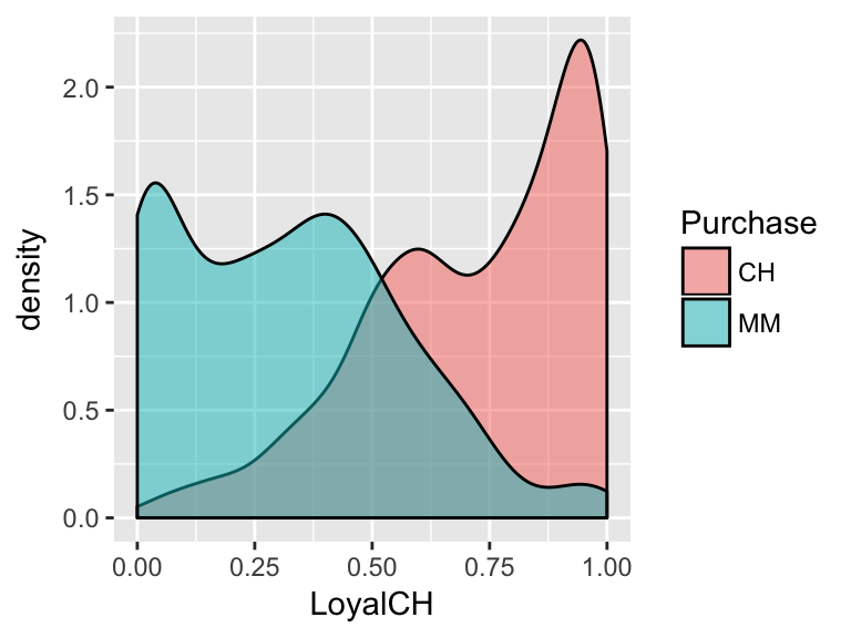 From this visualization, develop an approximate rule that can be used to classify a NEW customer as a potential purchaser of CH based on their brand loyalty:
