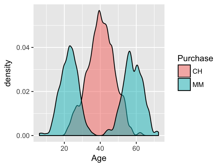 - From this visualization, develop an approximate rule that can be used to classify a NEW customer as a potential purchaser of CH based on their age alone: