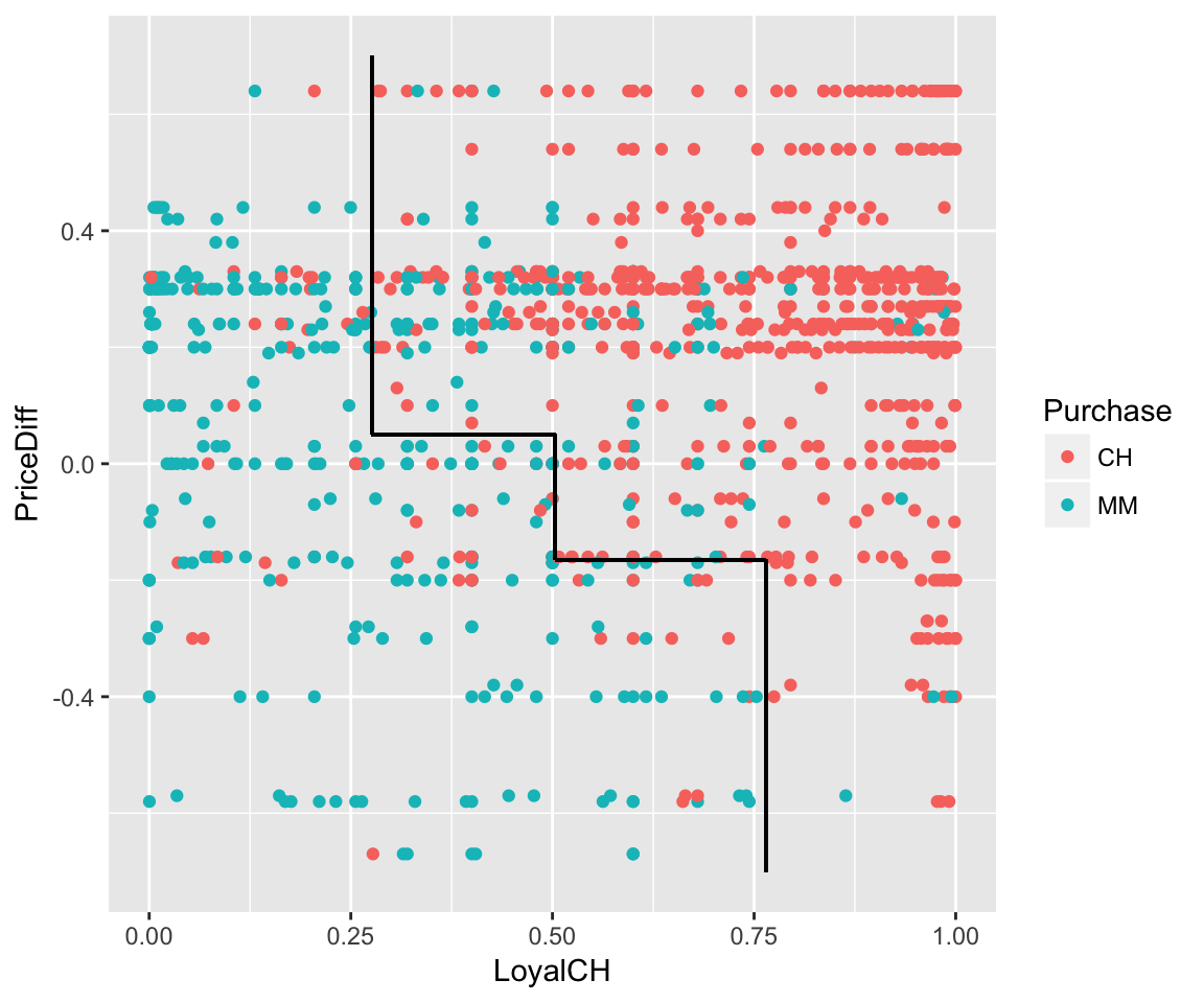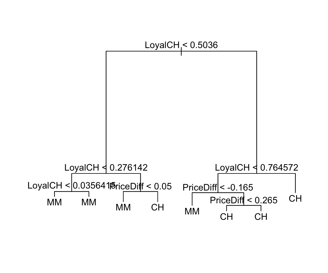 set.seed(2) tree2 <- tree(Purchase ~ PriceDiff, OJ) #check out the list of splitting rules ??? #plot the tree ???- Follow-up questions: