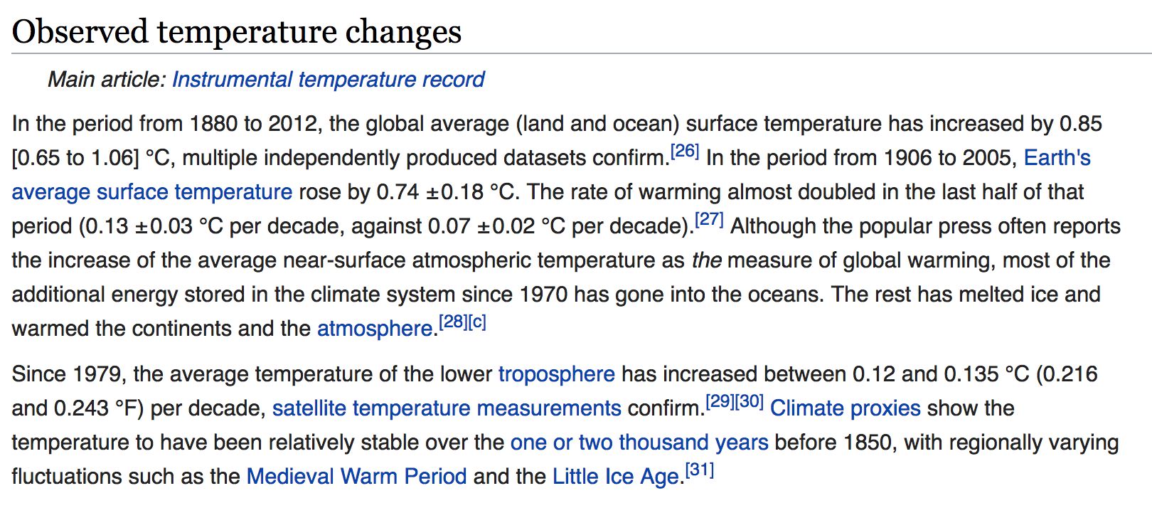 Check out this excerpt from the (2017) Wiki page on Global warming: